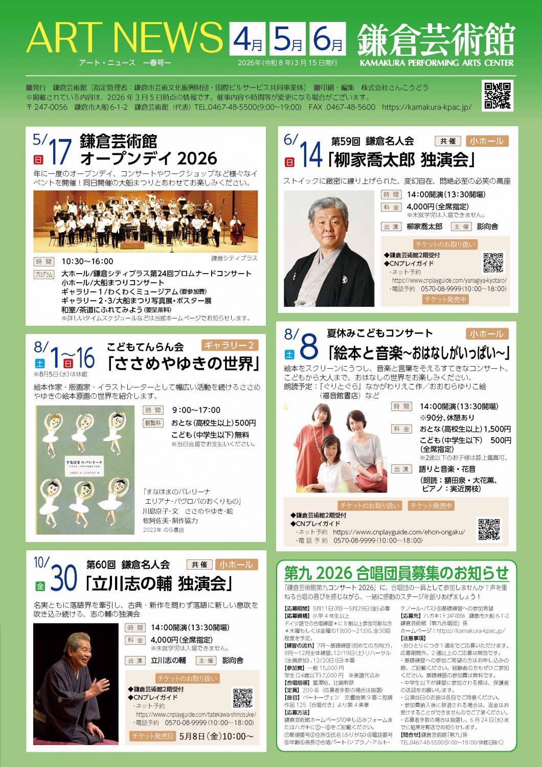 鎌倉芸術館アート・ニュース2026年春号(4・5・6月号)を発行しました。
